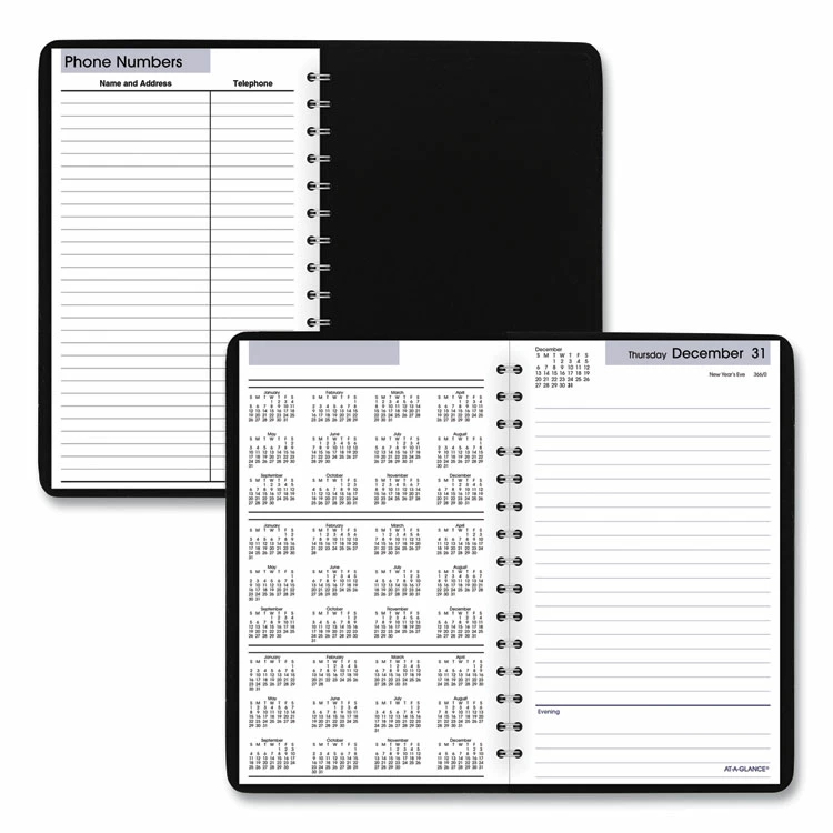 AT-A-GLANCE® DayMinder Daily Appointment Book, 8 X 5, Black Cover, 12-Month (Jan To Dec): 2023