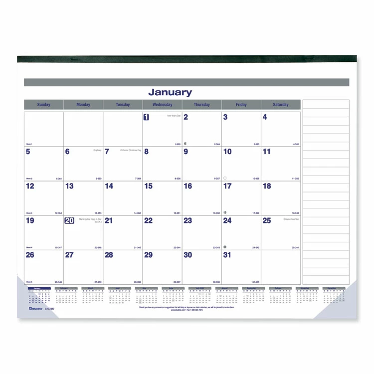 Blueline Net Zero Carbon Monthly Desk Pad Calendar, 22 X 17, White/Gray/Blue Sheets, Black Binding, 12-Month (Jan To Dec): 2023